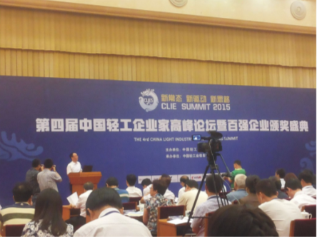 612日,由中國輕工業(yè)聯(lián)合會主辦的“第四屆中國輕工企業(yè)家高峰論壇暨輕工百強企業(yè)頒獎盛典”在北京京西賓館舉行。本屆論壇以“新思路、新驅動、新常態(tài)”為主題,來自政府部門、協(xié)會、媒體、企業(yè)及各地方輕工業(yè)組織共500余人參加了會議,新浪網(wǎng)等網(wǎng)絡媒體進行了全程報道。